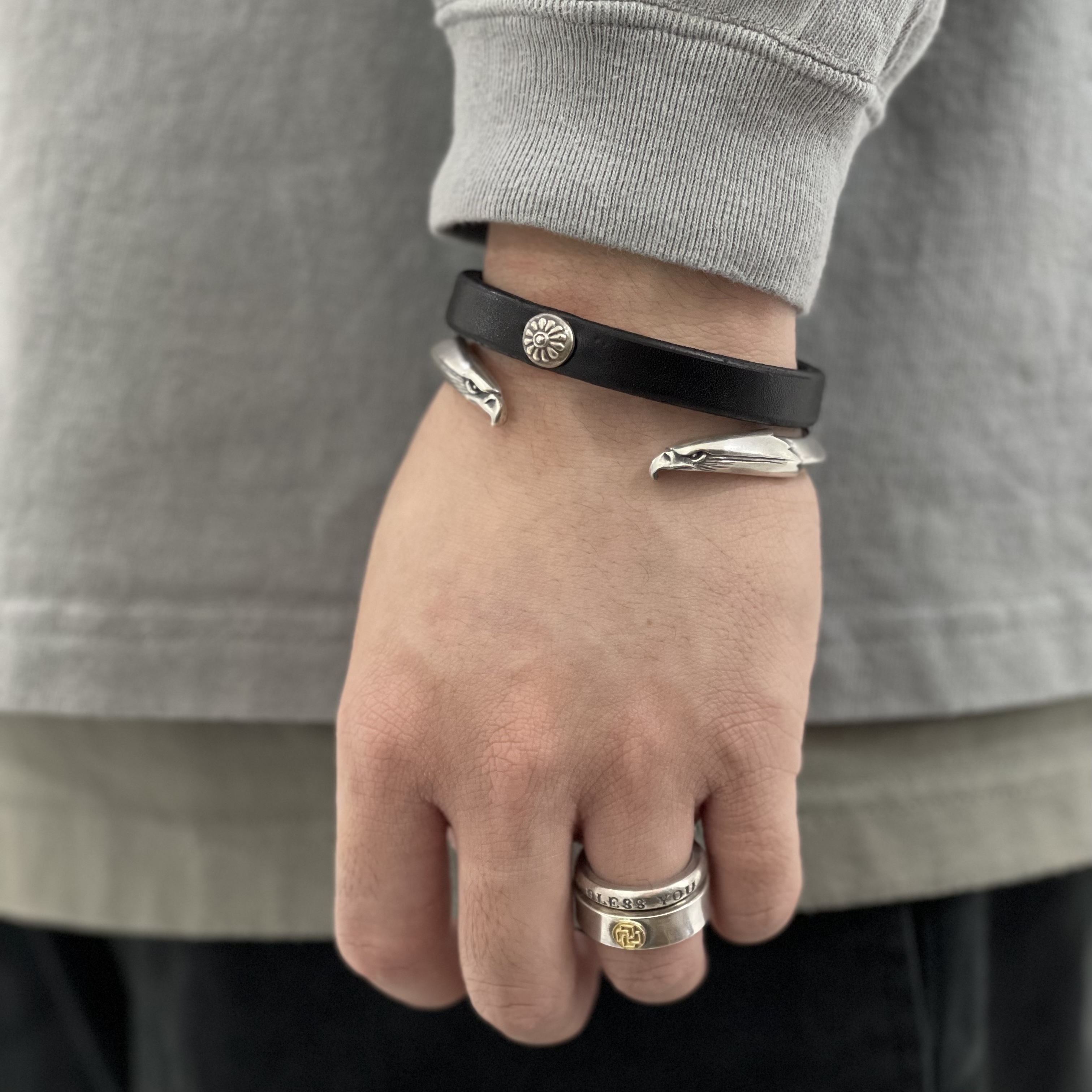 花釘銀鉤皮手環