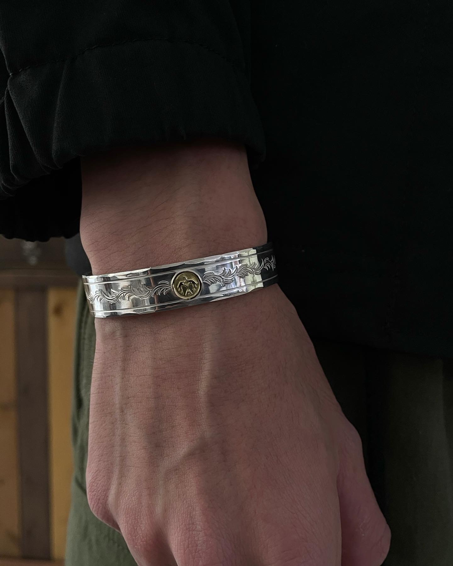 K18 守護之鷹蔓藤花紋手鐲