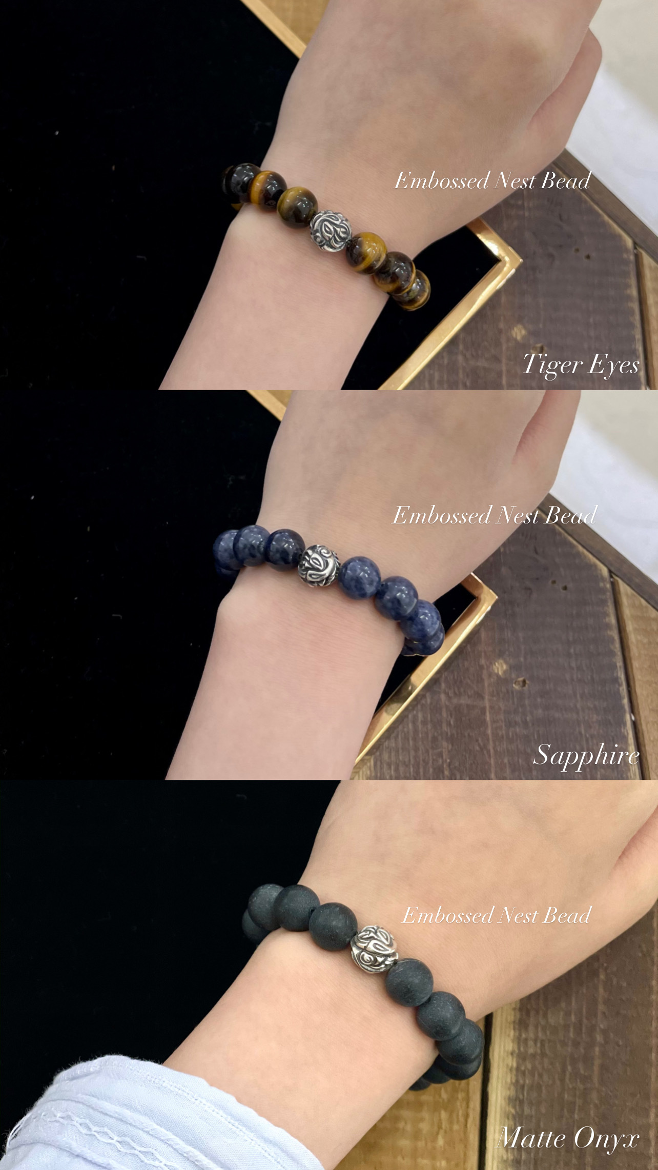 由於由天然寶石製成,每件手鍊的顏色和紋理都會有所不同。